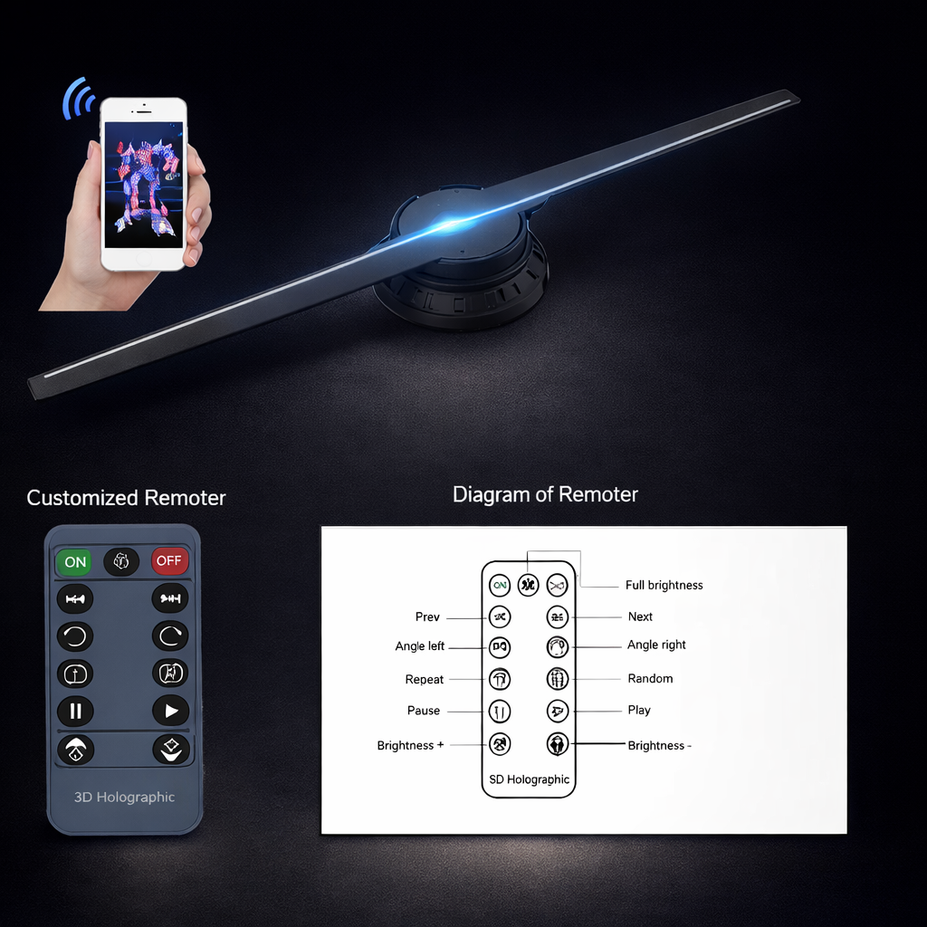 This advanced 3D Fan Holographic Advertising Machine combines cutting-edge holographic display technology with high-quality Bluetooth audio, offering a visually captivating and engaging advertising solution. The high-clear 3D fan displays bright, vivid holograms that grab attention from every angle, while the integrated Bluetooth speakers allow you to play custom audio through your mobile device. Easily controlled via a mobile app, this versatile machine is perfect for retail spaces, events, exhibitions, and promotions. The innovative design is perfect for showcasing dynamic content and captivating your audience.