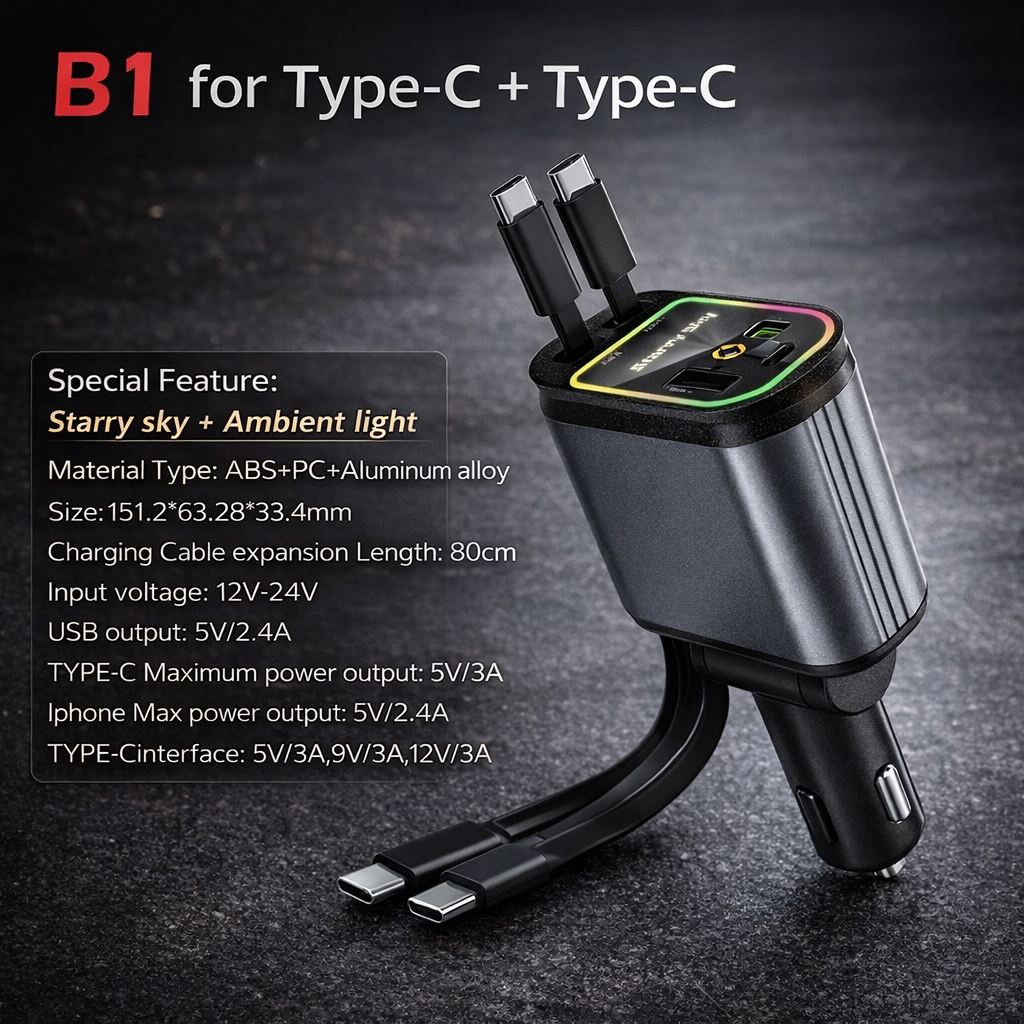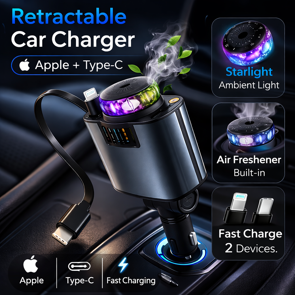 1 × Starlight™ 66W 5-in-1 Retractable Car Charger (Built-in cables + air freshener system)