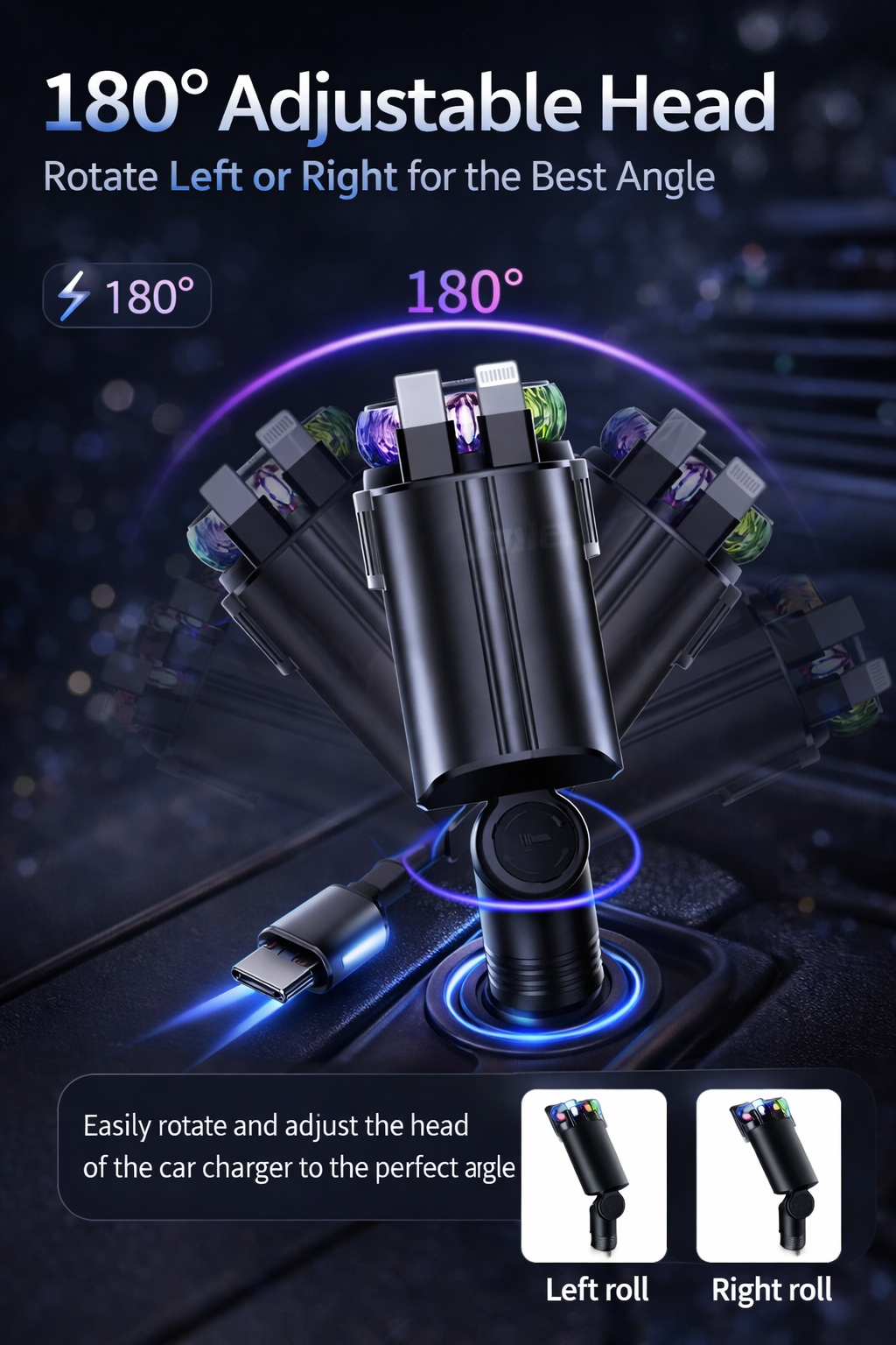 ✔ 🔄 Retractable Cables (No Mess) Built-in cables pull out when you need them and retract instantly — keeping your car clean and organized.